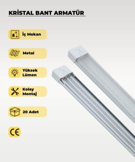 60W Beyaz Kristal Led Bant Armatür 6500K (Beyaz Işık) 20 Adet