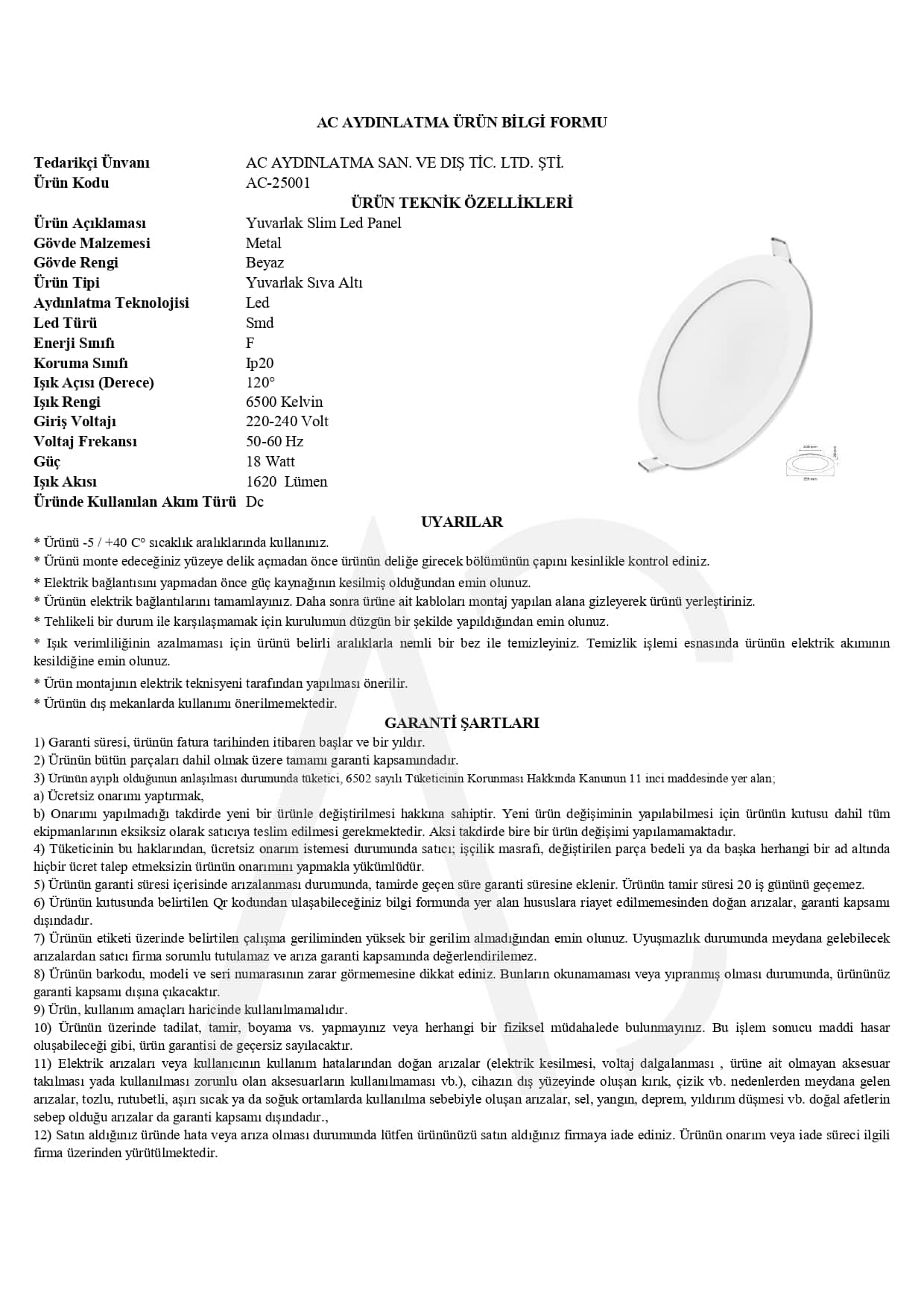Sonuç olarak, 18W Sıva Altı Yuvarlak Slim Led Panel modern ve şık bir aydınlatma çözümüdür. Minimal bir görünüm sunar ve kolay kurulumu ile dikkat çeker. Yüksek verimli LED’lerle donatılmıştır ve enerji tasarrufu sağlar. Doğal renkleri ve nesneleri ortaya çıkarmak için yüksek CRI değerine sahiptir. Hem çevre dostu hem de uzun ömürlü bir seçenektir.