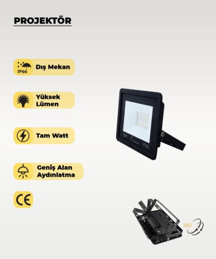 Sağlam yapısı, dış hava koşullarına dayanıklıdır ve su geçirmezlik özelliği sayesinde yağmur, kar ve tozdan etkilenmez. LED teknolojisi sayesinde enerji tüketimini minimumda tutarken, uzun ömürlü kullanım sağlar. 500W gücü, geniş bir alanı aydınlatmak için yeterli ışık sağlar ve düşük bakım gereksinimi ile kullanıcıya avantaj sunar. Aynı zamanda, kolay montaj özelliği ve esnek kullanım seçenekleri ile her türlü dış mekanda sorunsuz bir şekilde kullanılabilir.