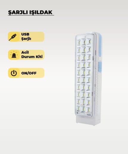 30 Ledli Şarjlı Işıldak Beyaz Işık