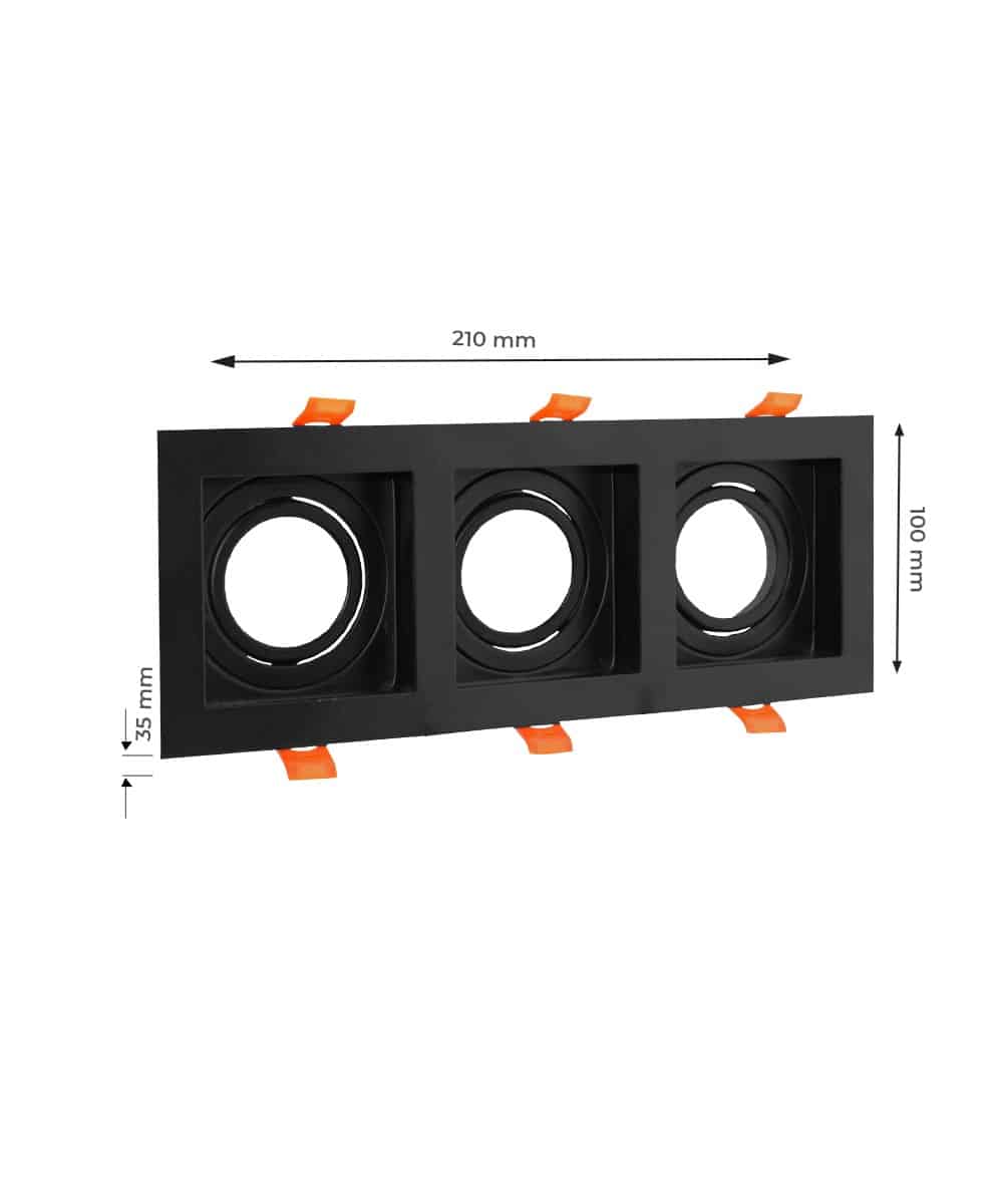 Gu10 Dekoratif Üçlü Kare Metal Kasa Siyah